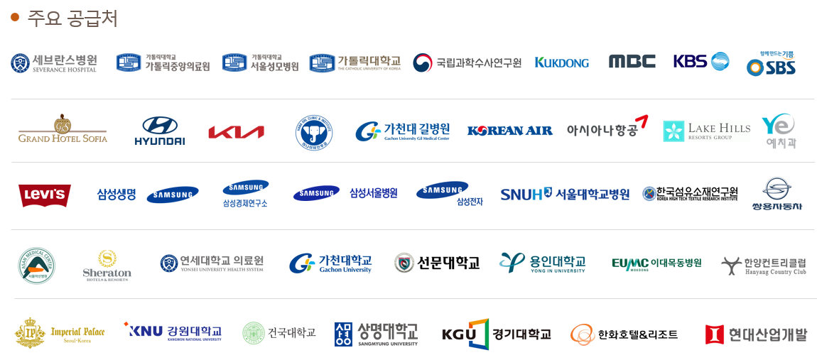 국내의 유명 종합병원, 다수의 로컬 병의원, 대기업, 방송사