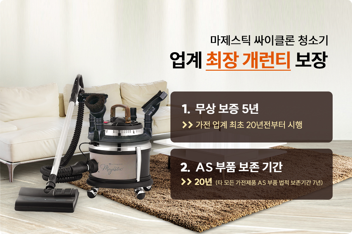 필터콘 장착으로 먼지가 차도 흡입력은 떨어지지 않는 Cylinder 구조.