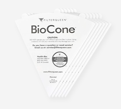 필터콘은, 초미세먼지(P2.5)를 비롯하여 0.2um 박테리아, 세균까지 99.98% 제거하는 기본 필터이며 1개월 마다 교체한다.